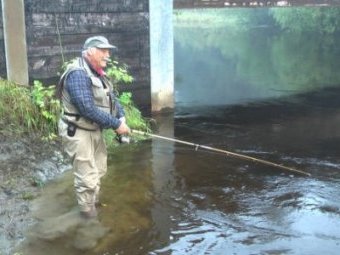 die weniger grosse Anzahl der aufsteigenden Lachse gelauert. Und sie kommen :