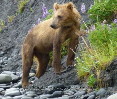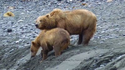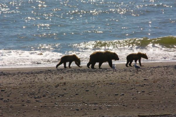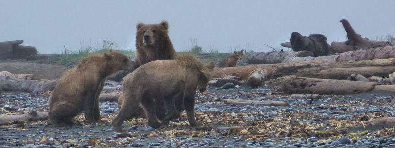 Die Bärenfamilie kommt auch in unsere Nähe, verzieht sich nach kurzer Visitation aber wieder auf die Klippen.