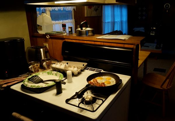 Der Geruch von Rührei und Speck holt uns am frühen Morgen aus dem Schlaf.