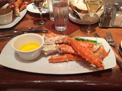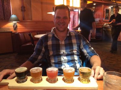 Im Brewhouse gönnen wir uns King Crabs und einen vorzüglichen Schluck Wein. Pascal lässt sich die diversen Spezialbrau's nochmals munden.