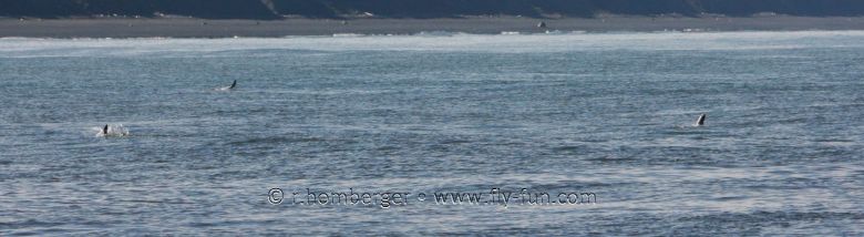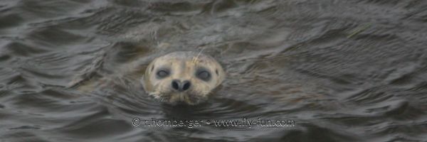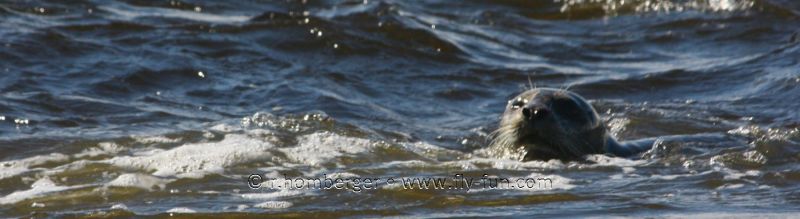 Die Robben zeigen gute Laune im Jagen der Lachse und beim Surfen mit den Wellen.