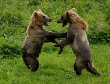 Es lohnt sich! Ein früher Aufstieg (auch wieder nur wenige) und ein eindrückliches Erlebnis: Die Bärenmama jagt mit vollem Einsatz!