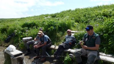 Pascal macht Pause, Felix und ich werden von Denis zum Fluss begleitet. Irgendwann reicht es mir, Felix versucht es weiter und kehrt mit einem Erfolg zurück.