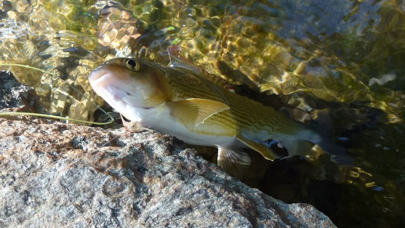 Auch die Aeschen sind wieder da. Nicht in so grosser Anzahl wie gewohnt und diesmal sehr scheu. Da muss ich schon in die Trickkiste greifen.