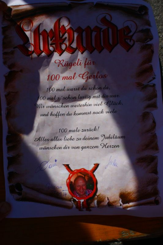 Rugeli taucht auf! Auch auswärts ist er für seinen 100. gebührend gefeiert worden.