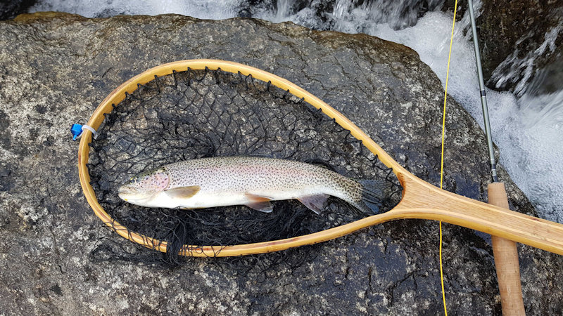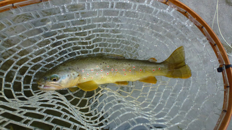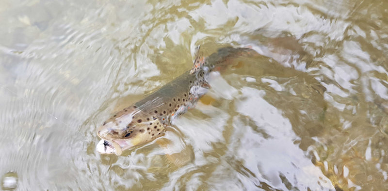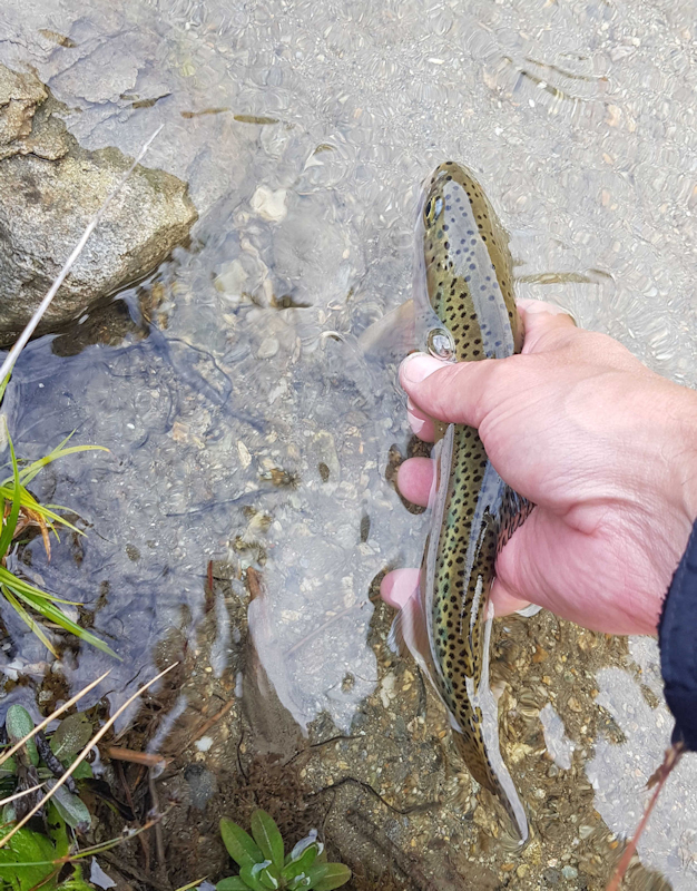 Die erste Fliege landet im Busch, die nächste so schnell am Fisch, dass ich (wieder) zu spät bin.